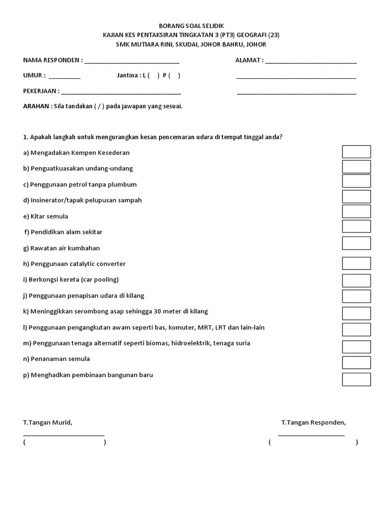 Trainees2013 contoh borang soal selidik geografi . Borang soal selidik pt3 geografi . Borang soal selidik sistem pengangkutan pt3 idea terkini. Umur 21 30 tahun 31 40 tahun 41 50 tahun 51 tahun ke atas. Contoh borang soal selidik geografi.